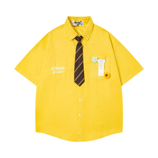 𝕃oose 𝔽it ☞𝟤𝟢𝟤𝟧 ☜領帶系列刺繡小花百搭休閒寬鬆襯衫M-369