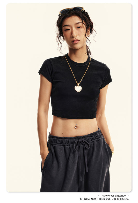 ♛𝔽𝕦𝕤𝕚𝕠𝕟 𝔽𝕠𝕔𝕦𝕤 ♛410G重磅水洗美式復古圓領厚T GH-77