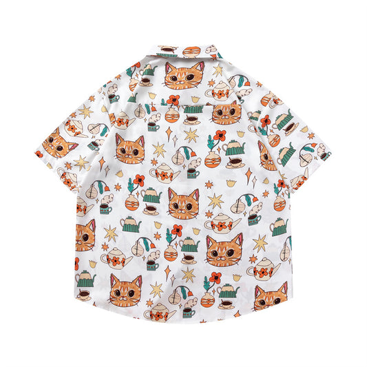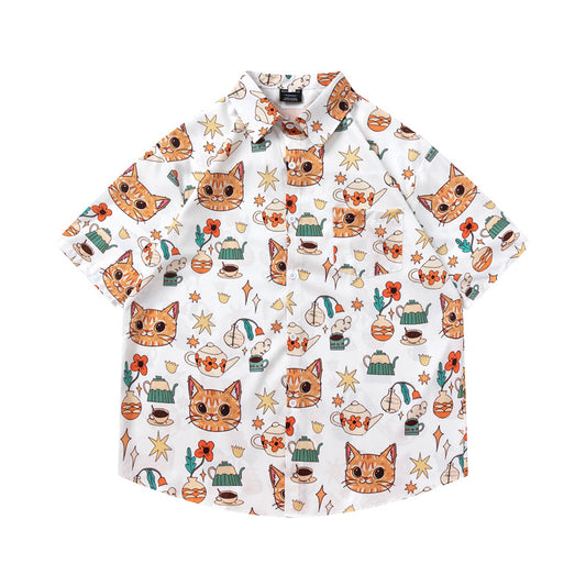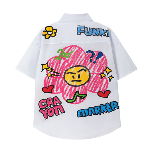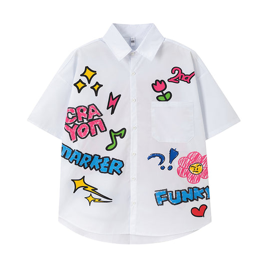 𝕃oose 𝔽it ☞𝟤𝟢𝟤𝟧 ☜領帶系列蠟筆手繪印花百搭休閒寬鬆襯衫U-01