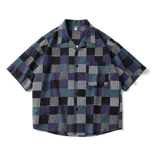 𝕃oose 𝔽it ☞𝟤𝟢𝟤𝟧 ☜美式復古抽象印花翻領寬版上衣SA-02