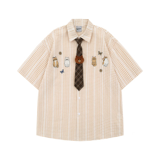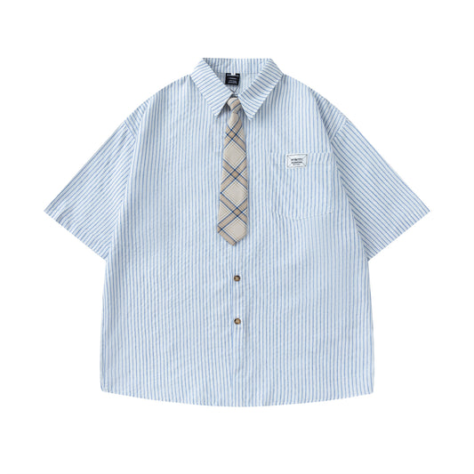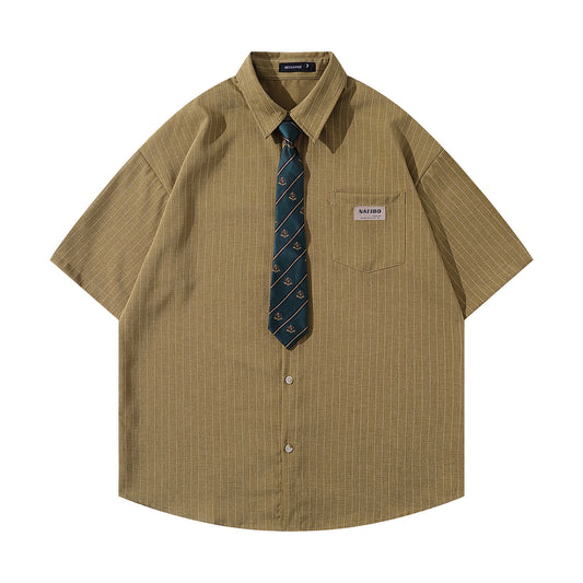 𝕃oose 𝔽it ☞𝟤𝟢𝟤𝟧 ☜領帶系列日式復古學院風百搭休閒短袖襯衫PZ-7