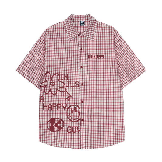 𝔼mbro 𝕊hirt𒉽美式復古可愛小狗刺繡印花短袖寬鬆襯衫外套IN-730