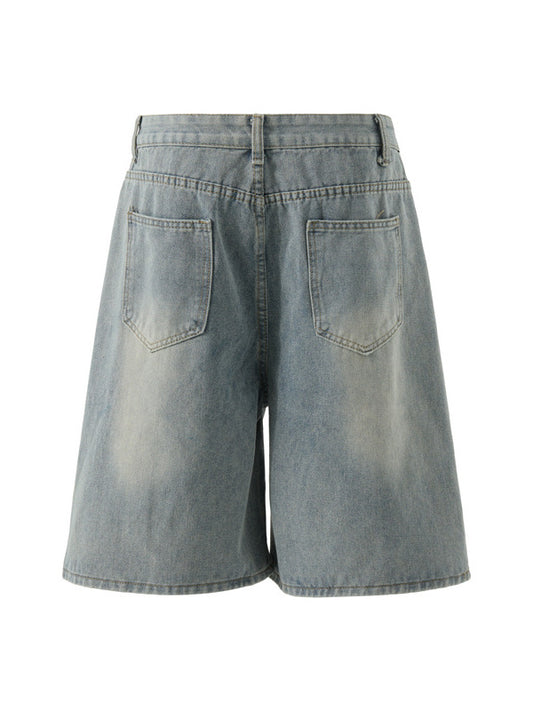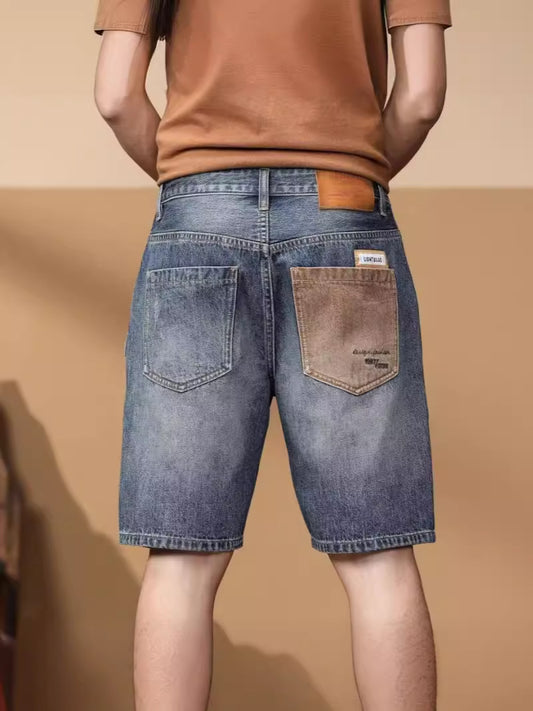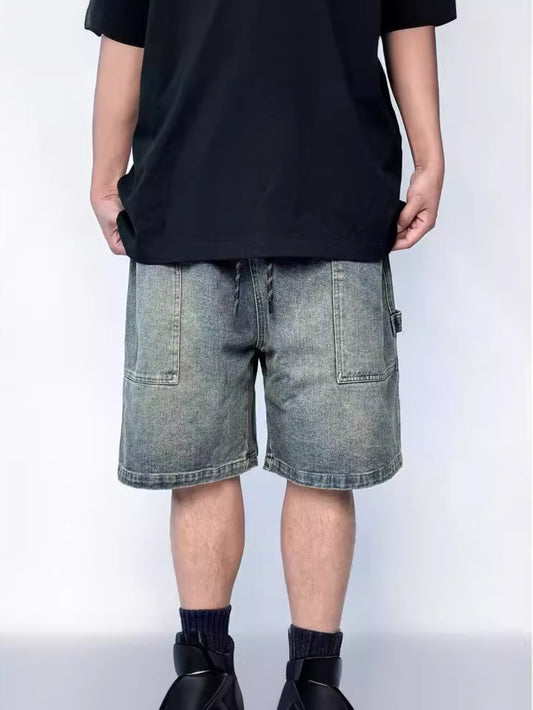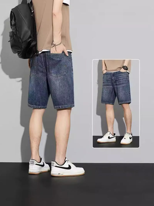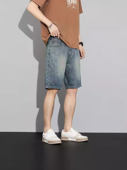 ♜ 𝔽𝕦𝕤𝕚𝕠𝕟 𝔽𝕠𝕔𝕦𝕤 𖥟 𝖏𝖊𝖆𝖓𝖘 ☞ 復古牛仔短褲5分夏季薄款冰絲2025潮牌美式寬鬆休閒五分中褲 Bs-04