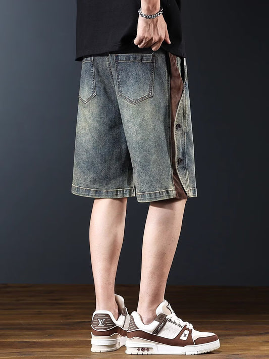 ♜ 𝔽𝕦𝕤𝕚𝕠𝕟 𝔽𝕠𝕔𝕦𝕤 𖥟 𝖏𝖊𝖆𝖓𝖘 ☞ 美式復古牛仔短褲夏季新款寬鬆重磅水洗五分褲休閒拼接褲 Bs-12