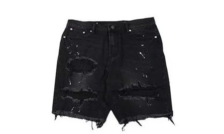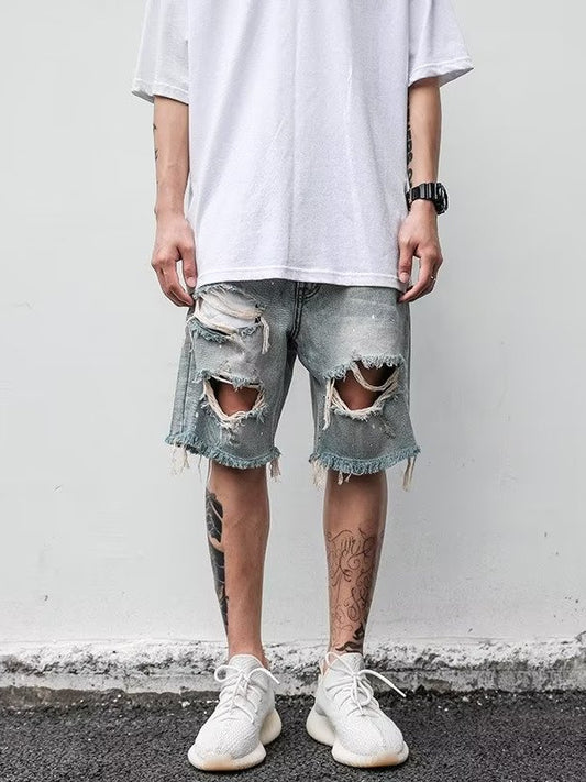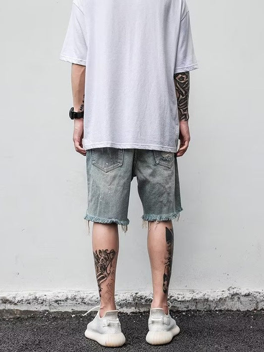 ♜ 𝔽𝕦𝕤𝕚𝕠𝕟 𝔽𝕠𝕔𝕦𝕤 𖥟 𝖏𝖊𝖆𝖓𝖘 ☞ 美式毛邊破洞牛仔短褲設計感小眾夏季薄款寬鬆五分褲 Bs-17