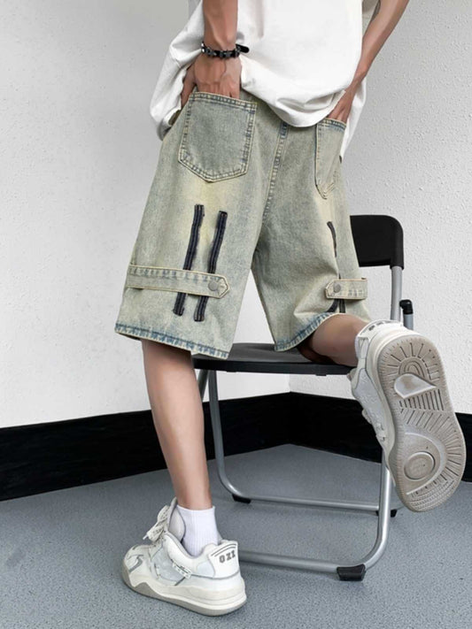 ♜ 𝔽𝕦𝕤𝕚𝕠𝕟 𝔽𝕠𝕔𝕦𝕤 𖥟 𝖏𝖊𝖆𝖓𝖘 ☞ 工裝牛仔短褲夏季薄款寬鬆潮牌五分褲美式痞帥休閒直筒中褲 Bs-02