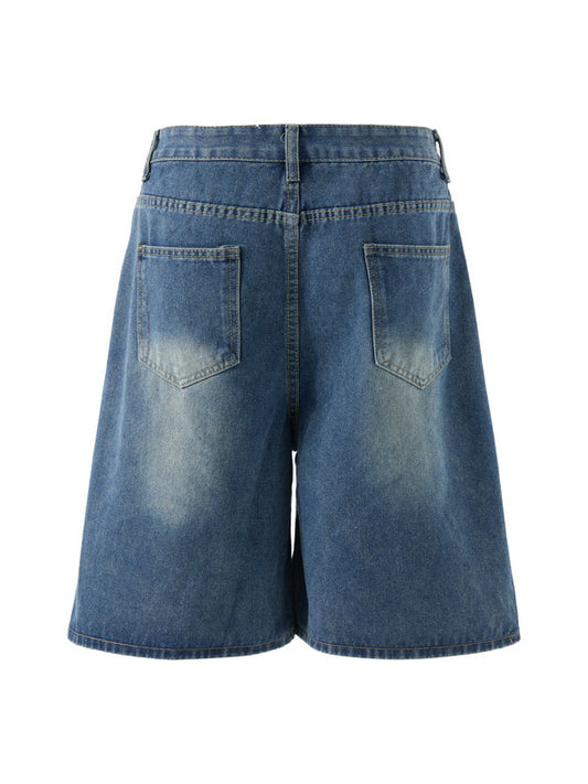 ♜ 𝔽𝕦𝕤𝕚𝕠𝕟 𝔽𝕠𝕔𝕦𝕤 𖥟 𝖏𝖊𝖆𝖓𝖘 ☞ 做舊闊腿牛仔褲男女同款夏季新款五分褲百搭哈倫中褲寬鬆潮牌短褲 Bs-05