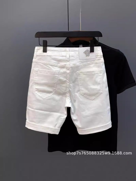 ♜ 𝔽𝕦𝕤𝕚𝕠𝕟 𝔽𝕠𝕔𝕦𝕤 𖥟 𝖏𝖊𝖆𝖓𝖘 ☞ 夏季薄款個性刺绣烫鑽牛仔短褲男士高街休閒彈力修身五分褲 Bs-15
