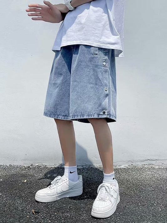 ♜ 𝔽𝕦𝕤𝕚𝕠𝕟 𝔽𝕠𝕔𝕦𝕤 𖥟 𝖏𝖊𝖆𝖓𝖘 ☞ 排扣牛仔短褲潮牌ins五分褲外穿薄款闊腿褲子潮流寬鬆 Bs-09