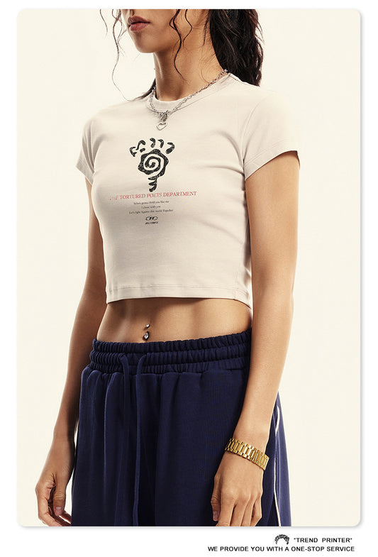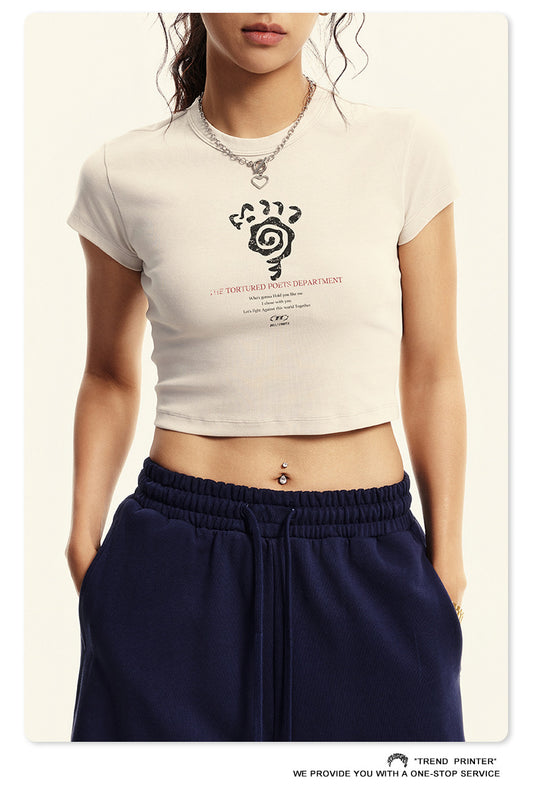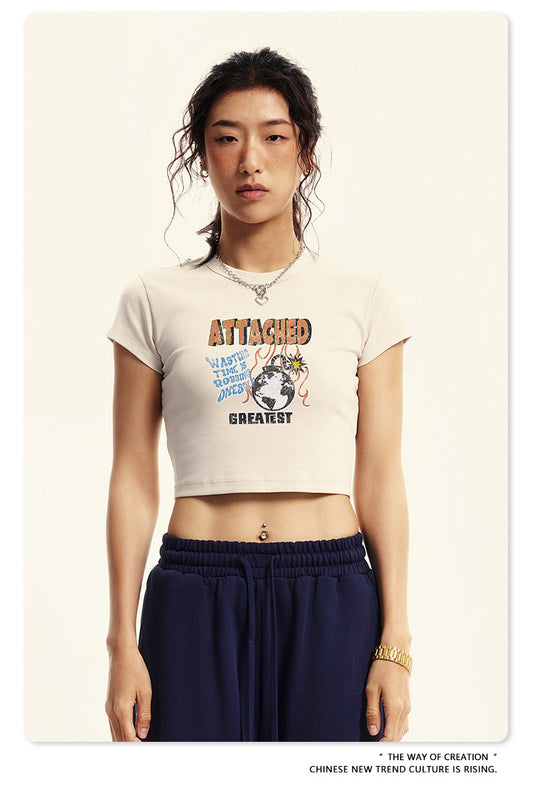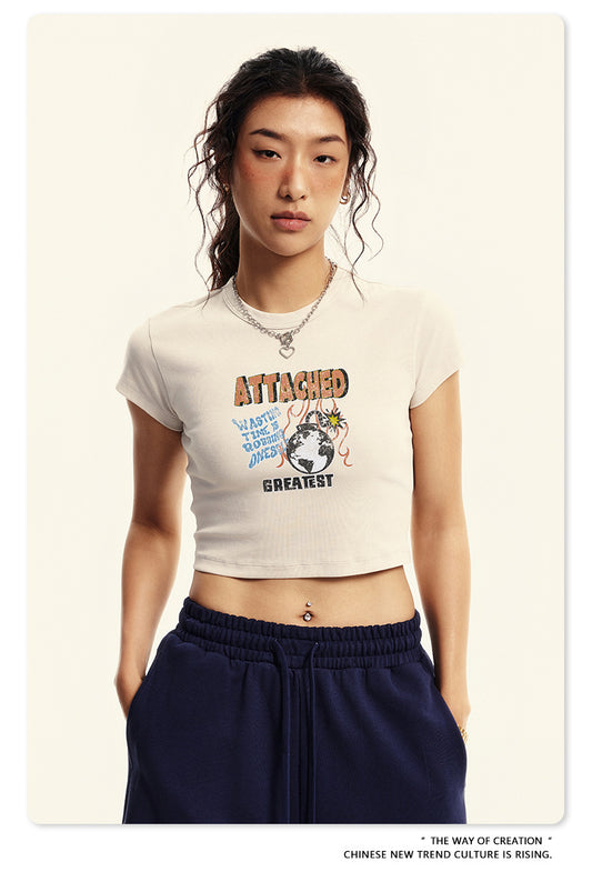 Fierce & Fitted 美式夏季修身磨損印花辣妹短版上衣07 復古米