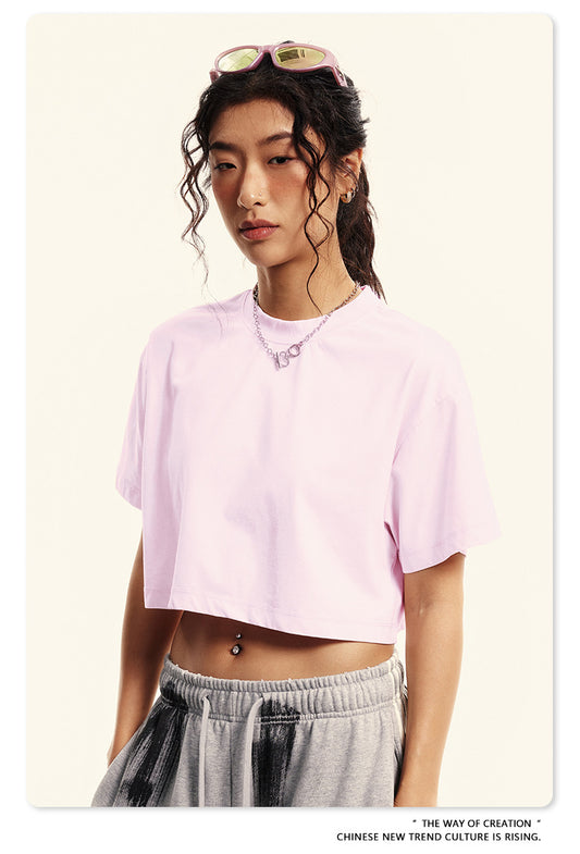 Fierce & Fitted 夏季美式復古做舊辣妹短款T袖N-7 水洗粉色