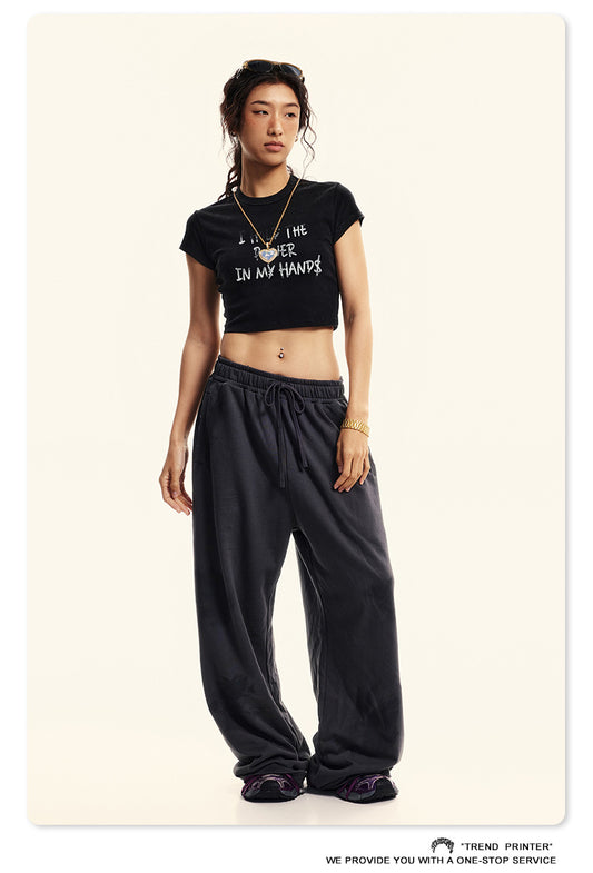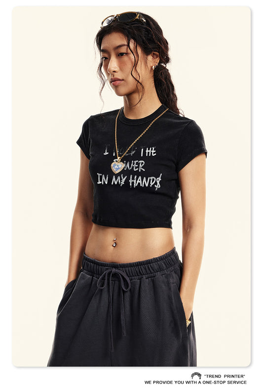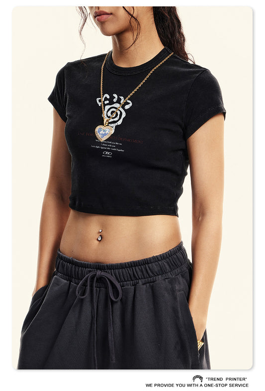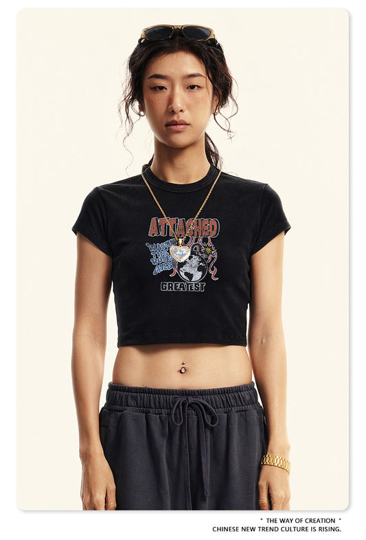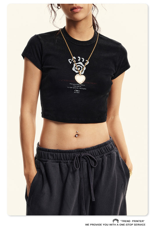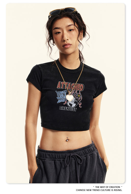 Fierce & Fitted 夏季美式復古做舊辣妹短款T袖N-6 水洗黑