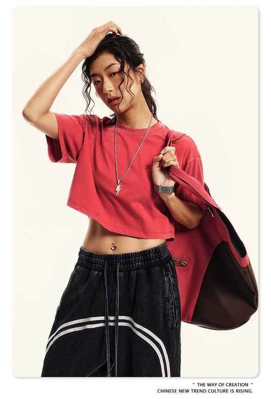 Fierce & Fitted 夏季美式復古做舊辣妹短款T袖N-6 水洗紅