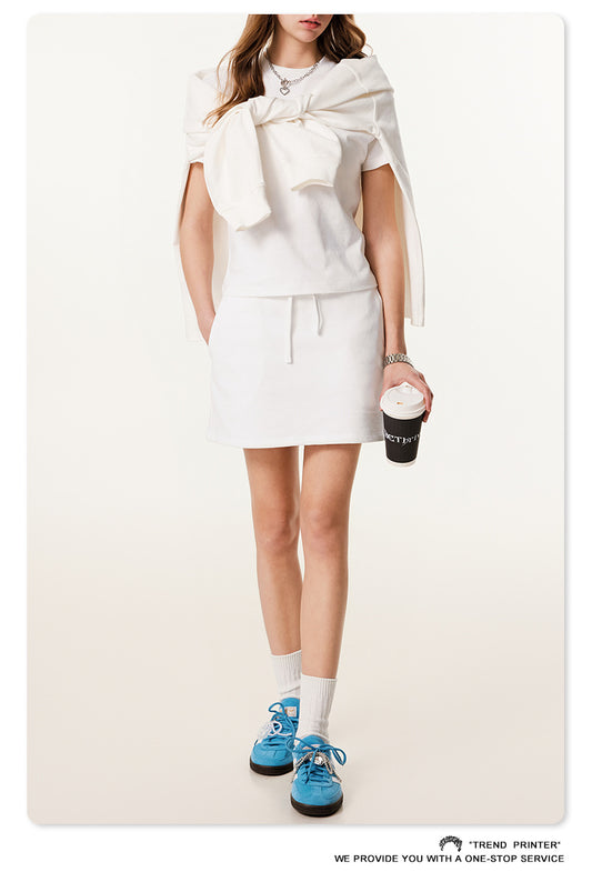 Fierce & Fitted 美式夏季甜妹圓領短T半身裙套裝 N-23 牙白色