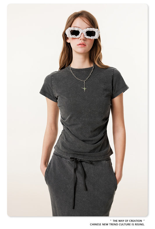Fierce & Fitted 夏季美式高街水洗短袖上衣A字裙套裝 N-9 深灰色