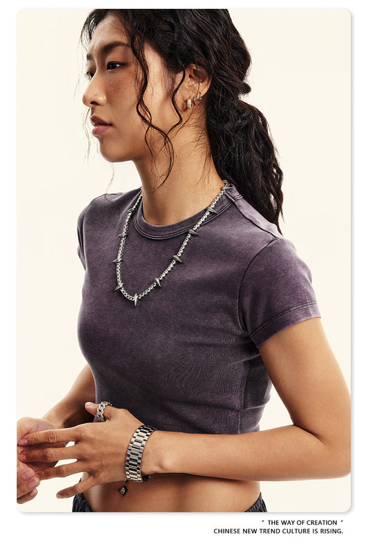 Fierce & Fitted 夏季美式復古做舊辣妹短款T袖N-6 水洗灰紫