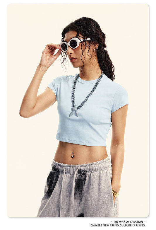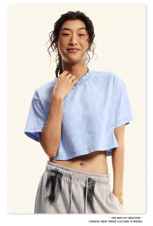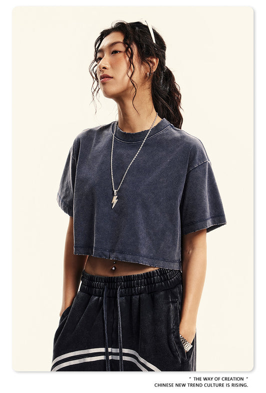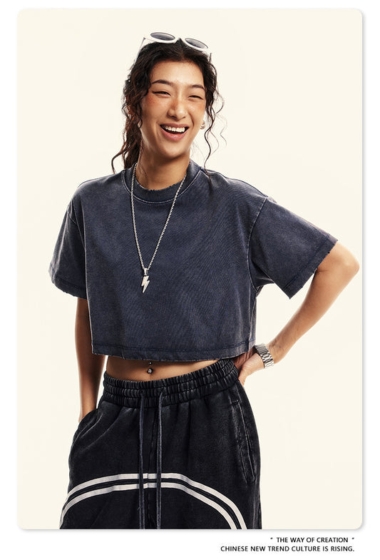 Fierce & Fitted 夏季美式復古做舊辣妹短款T袖N-6 水洗藍