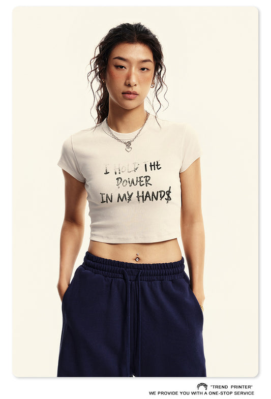 Fierce & Fitted 美式夏季修身字母印花辣妹短版上衣17 復古米