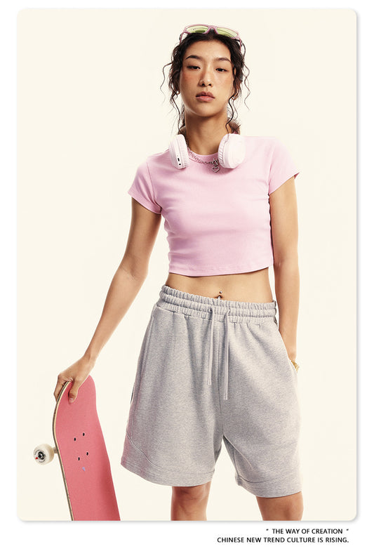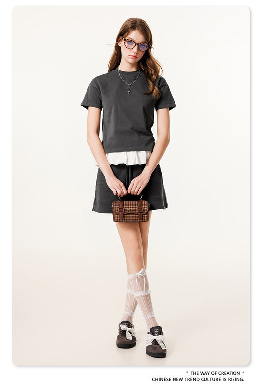 Fierce & Fitted 美式夏季甜妹圓領短T半身裙套裝 N-23 燕麥灰