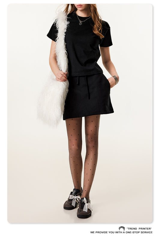 Fierce & Fitted 美式夏季甜妹圓領短T半身裙套裝 N-23 復古黑