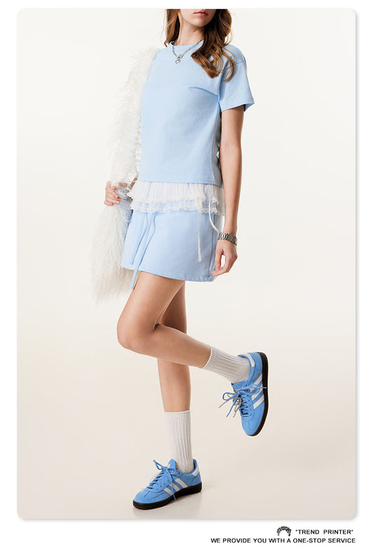 Fierce & Fitted 美式夏季甜妹圓領短T半身裙套裝 N-23 BABY藍