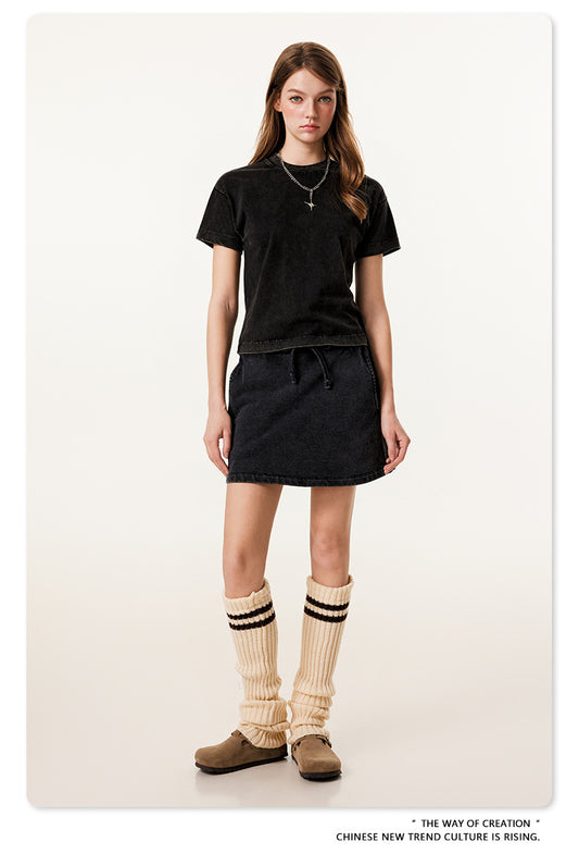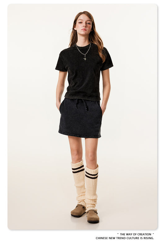 Fierce & Fitted 夏季美式高街水洗短袖上衣A字裙套裝 N-9 復古黑