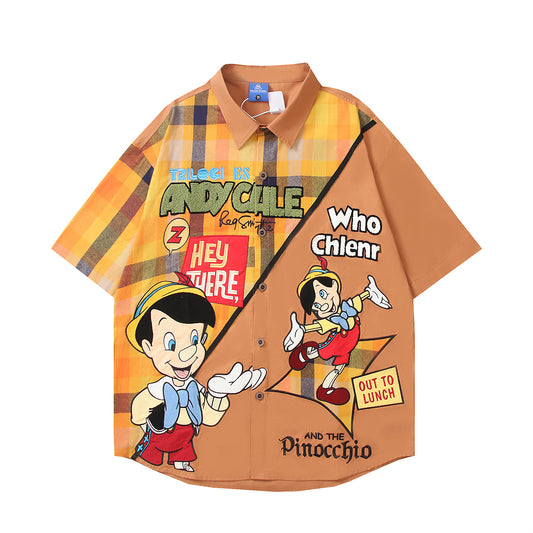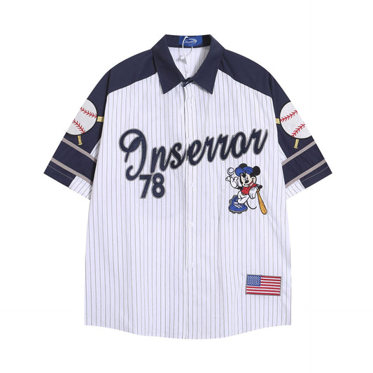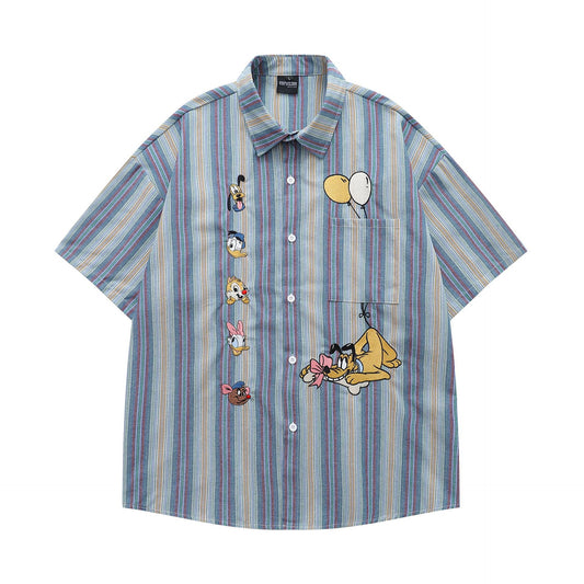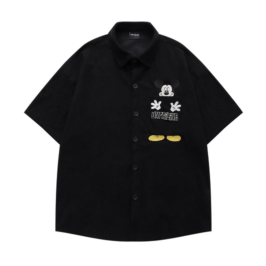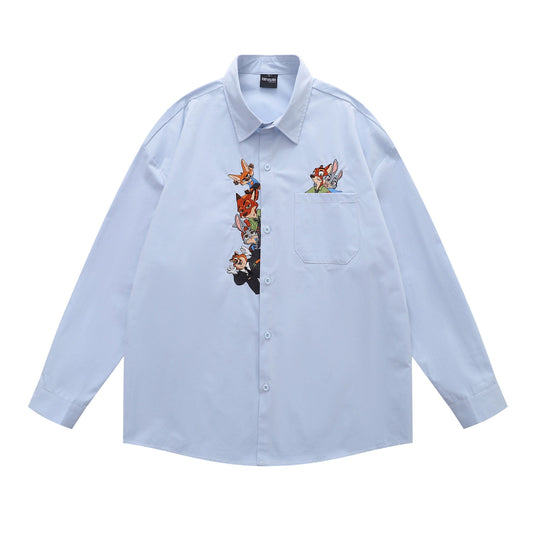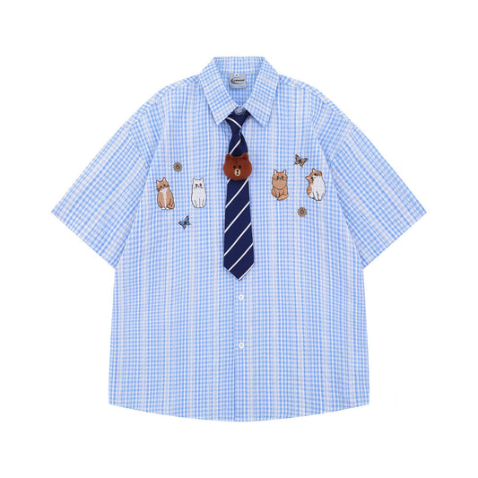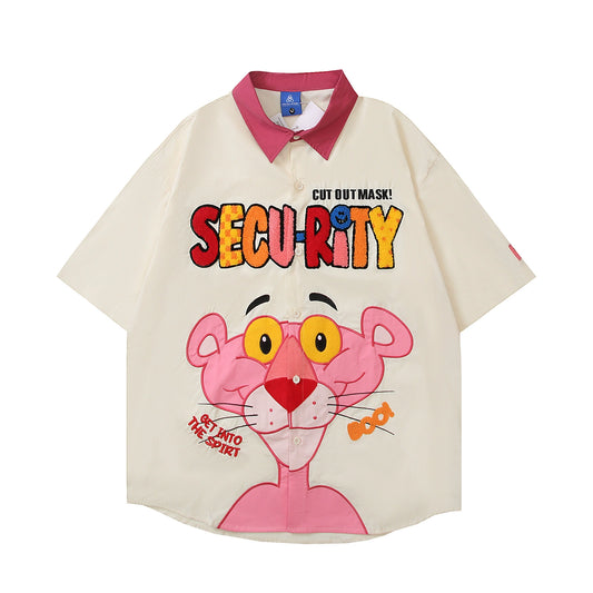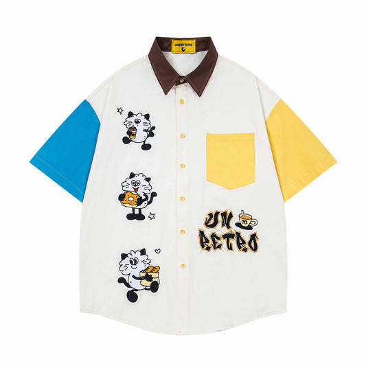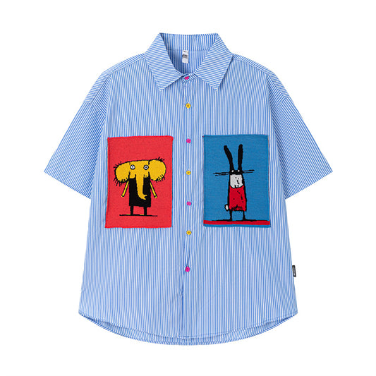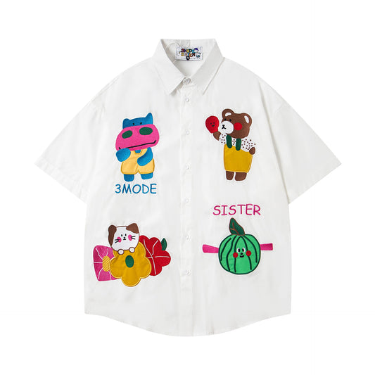 𝔼mbro 𝕊hirt𒉽美式復古可愛動物刺繡短袖百搭襯衫外套IN-567