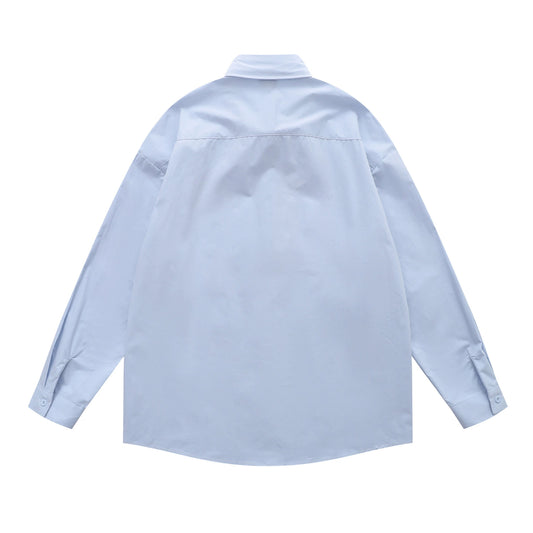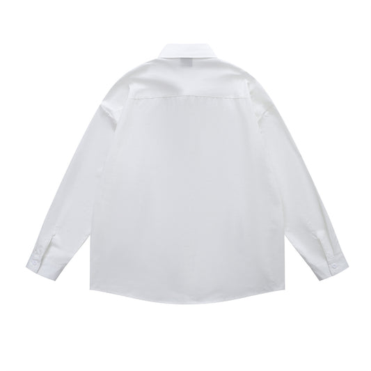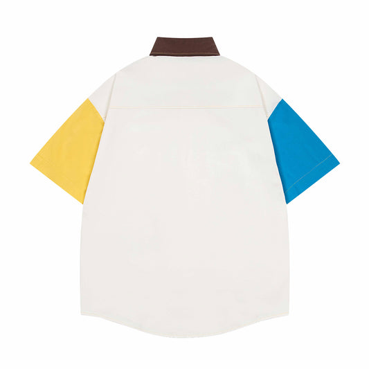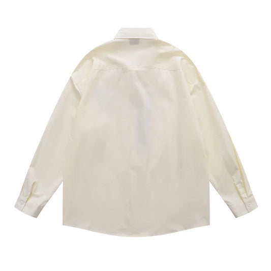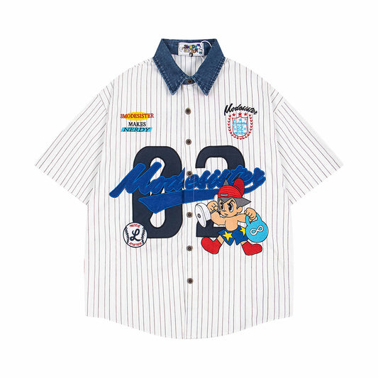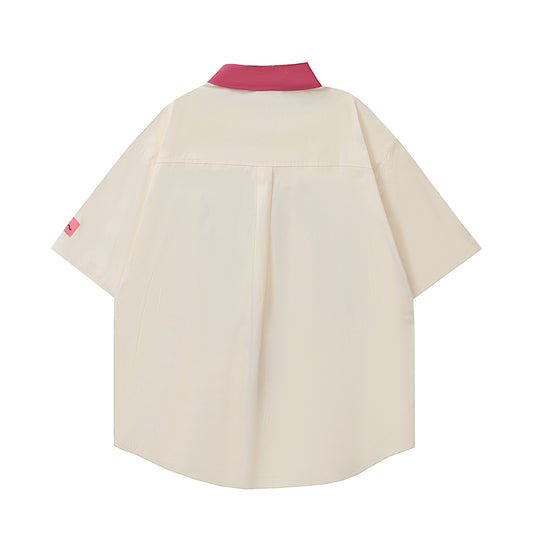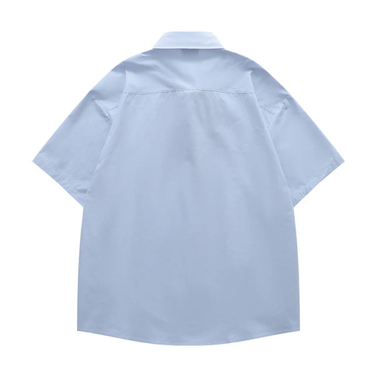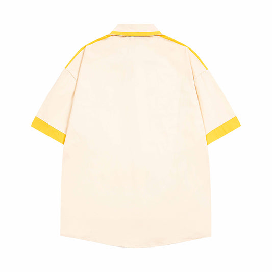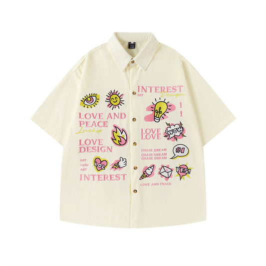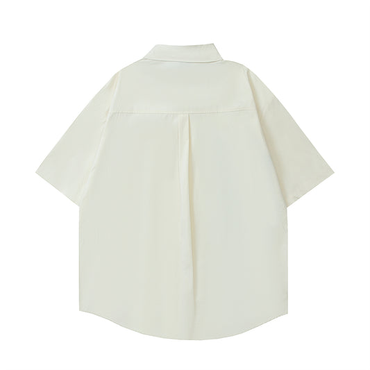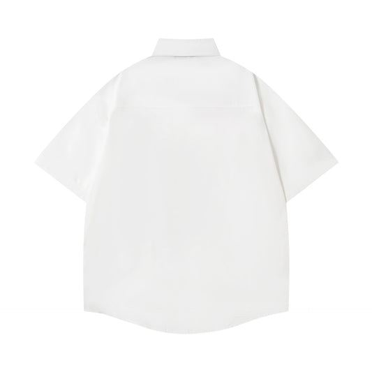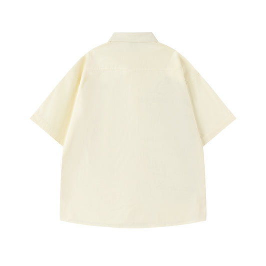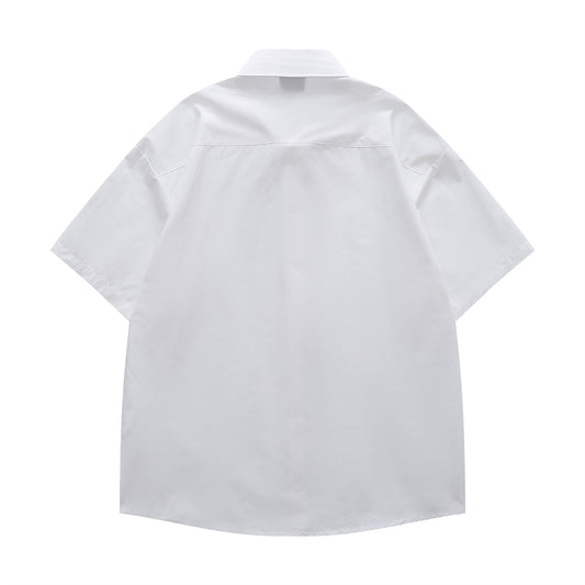 𝔼mbro 𝕊hirt𒉽美式復古逗趣圖案刺繡寬鬆百搭短袖襯衫 (白色)