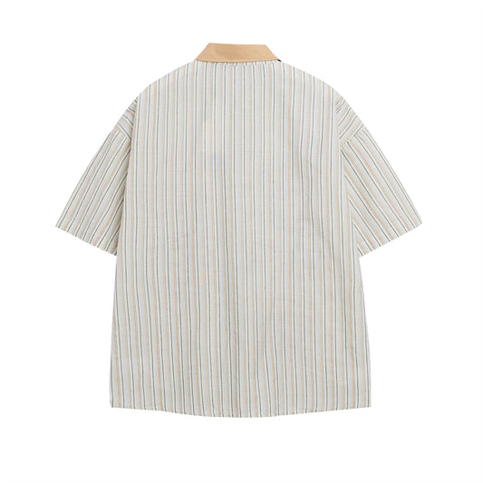 𝔼mbro 𝕊hirt𒉽 日式復古口袋針織翻領條紋襯衫 SA-6B