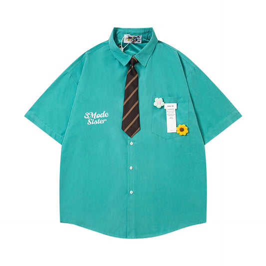 𝕃oose 𝔽it ☞𝟤𝟢𝟤𝟧 ☜領帶系列刺繡小花百搭休閒寬鬆襯衫M-369