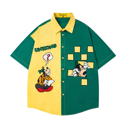 𝔼mbro 𝕊hirt𒉽美式復古可愛小狗刺繡寬鬆百搭短袖襯衫 (綠色)