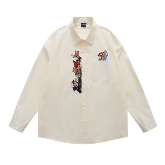 𝔼mbro 𝕊hirt𒉽美式復古趣味動物拼貼刺繡寬鬆襯衫U-33