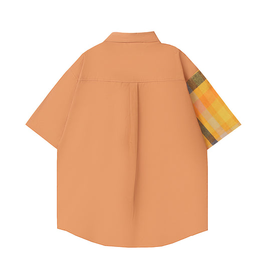 𝔼mbro 𝕊hirt𒉽日式復古貓咪刺繡翻領短袖襯衫 (杏色)