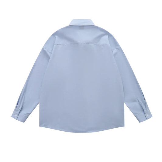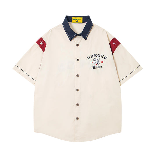 𝔼mbro 𝕊hirt𒉽 日式復古撞色小狗字母刺繡百搭寬鬆襯衫 UN-11