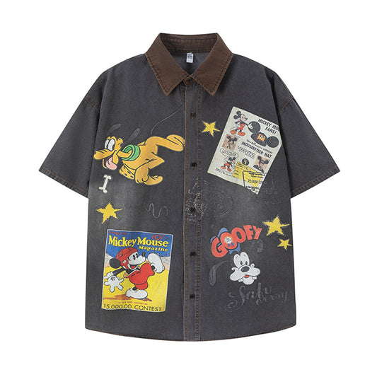 𝔼mbro 𝕊hirt𒉽美式復古撞色動物刺繡短袖牛仔襯衫外套 MO-50