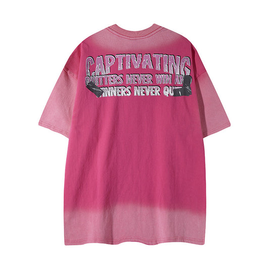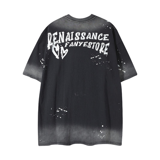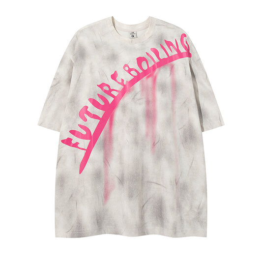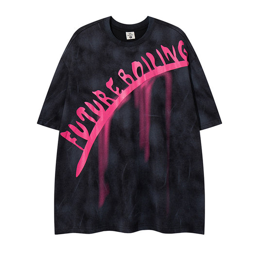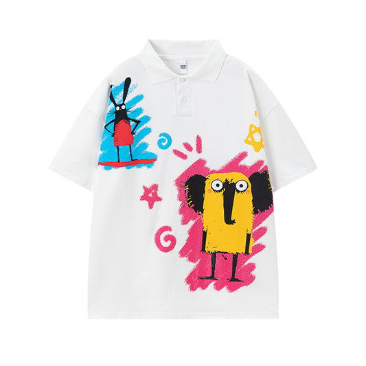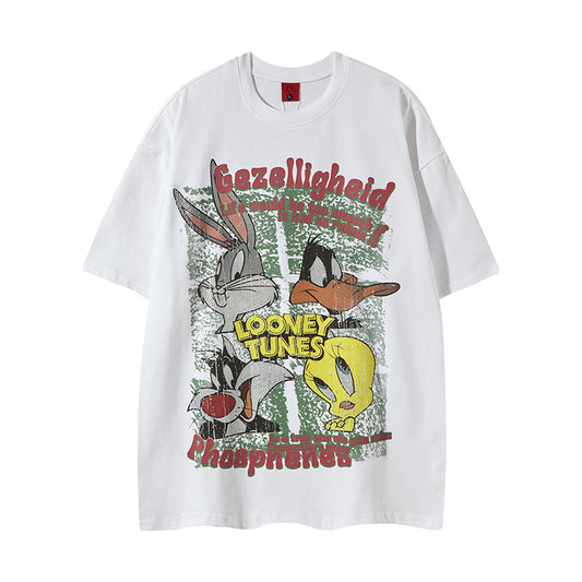 𝕃oose 𝔽it ☞𝟤𝟢𝟤𝟧 ☜美式復古渲染系列卡通印花男女中性 T-Shirt寬版上衣F-316