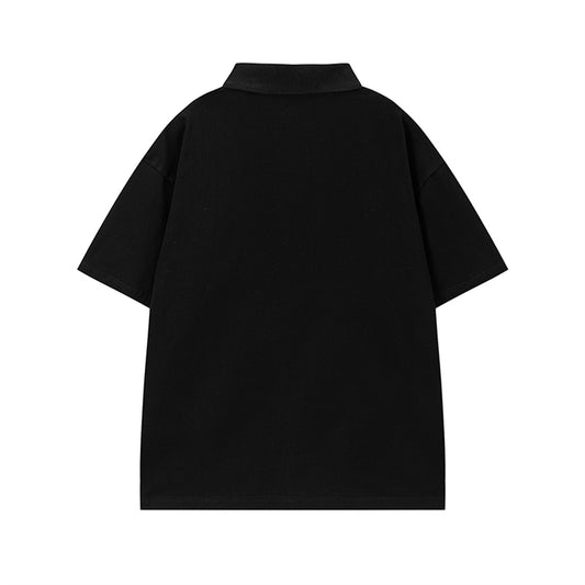 𝔽𝕦𝕤𝕚𝕠𝕟 𝔽𝕠𝕔𝕦𝕤 ✘ cleanfit黑色墊肩短袖男夏季金屬設計感小眾高級感痞帥小領口t恤 W115