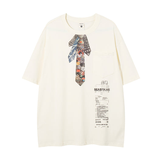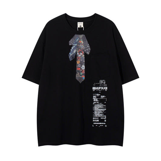 𝔽𝕦𝕤𝕚𝕠𝕟 𝔽𝕠𝕔𝕦𝕤 ✘ 歐美高街潮牌項鍊印花短袖t恤男女情侣款嘻哈hiphop寬鬆街頭上衣 W114