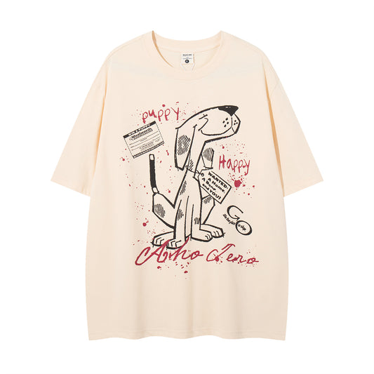 𝕃oose 𝔽it ☞𝟤𝟢𝟤𝟧 ☜美式復古小狗印花圓領男女中性 T-Shirt寬版上衣 P-7