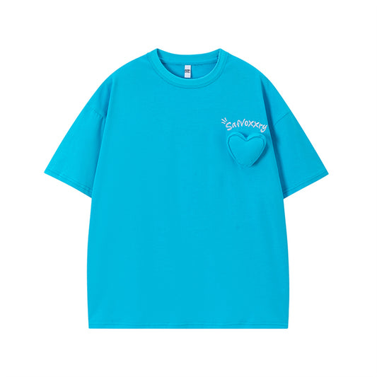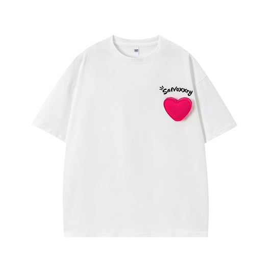 𝕃oose 𝔽it ☞𝟤𝟢𝟤𝟧 ☜美式復古愛心字母圓領T-Shirt寬版上衣SA-5