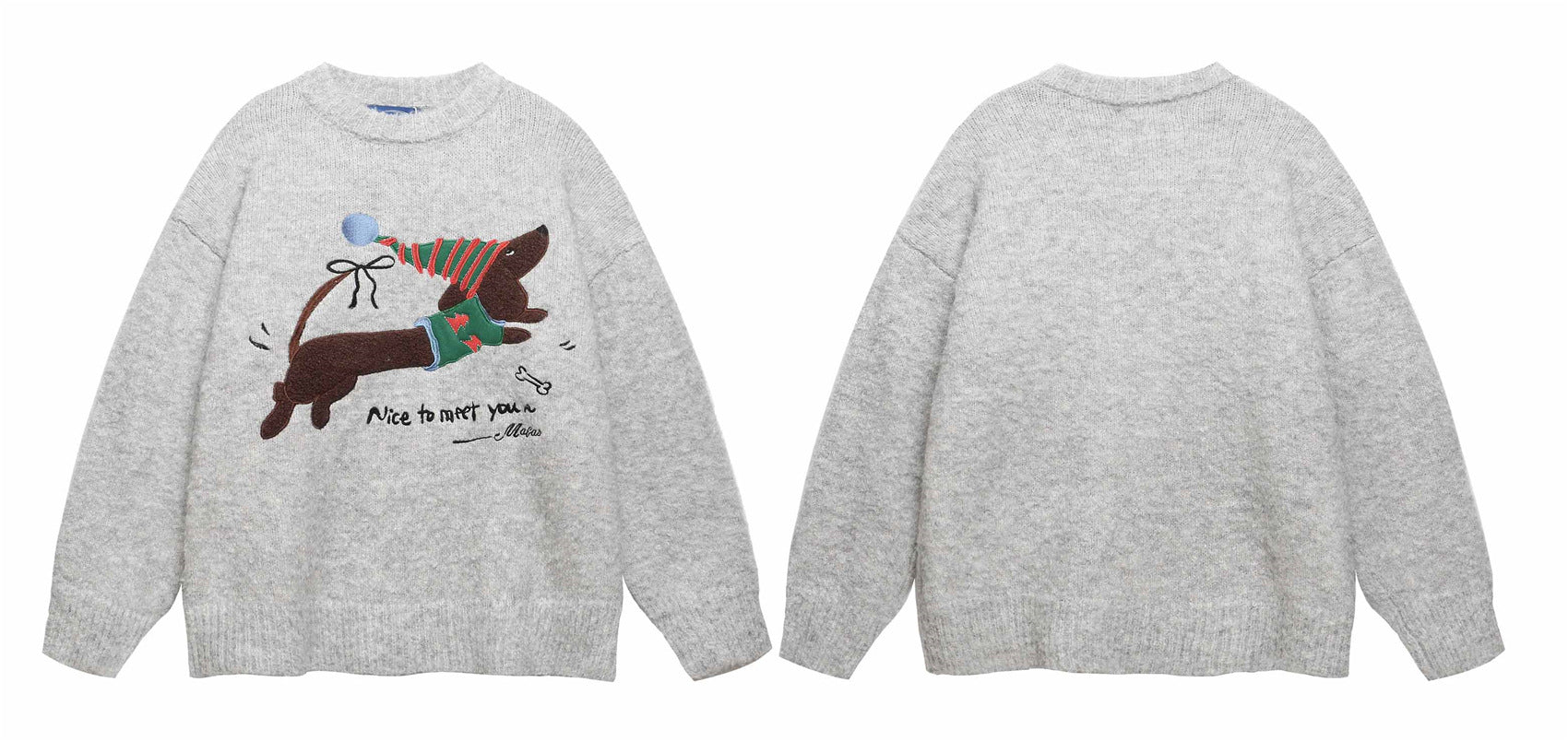 ⓀⓃⒾⓉ𒉽2025秋冬聖誕小狗刺繡圓領針織 K-52