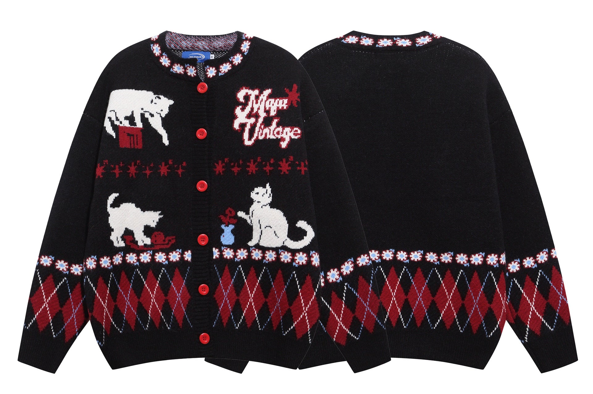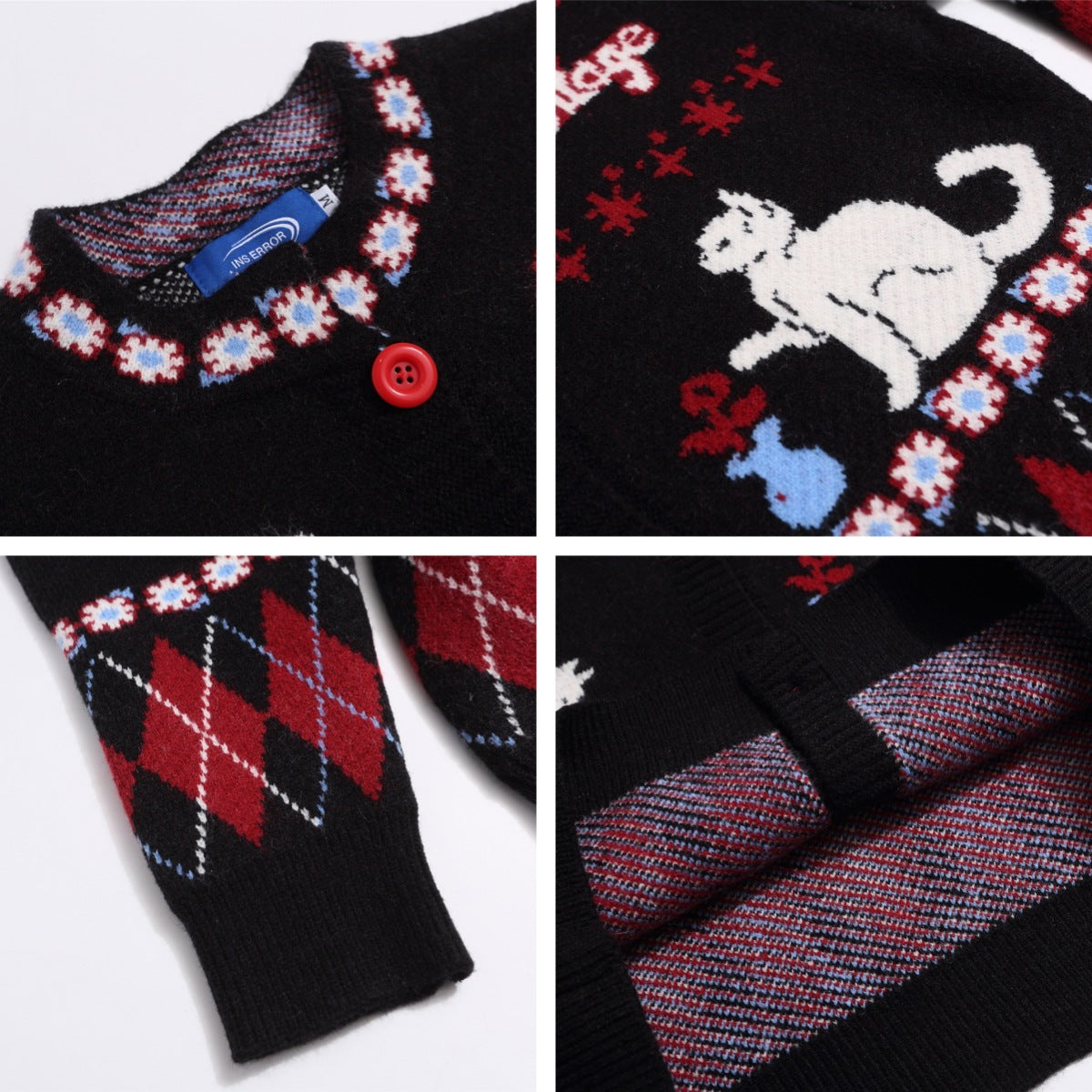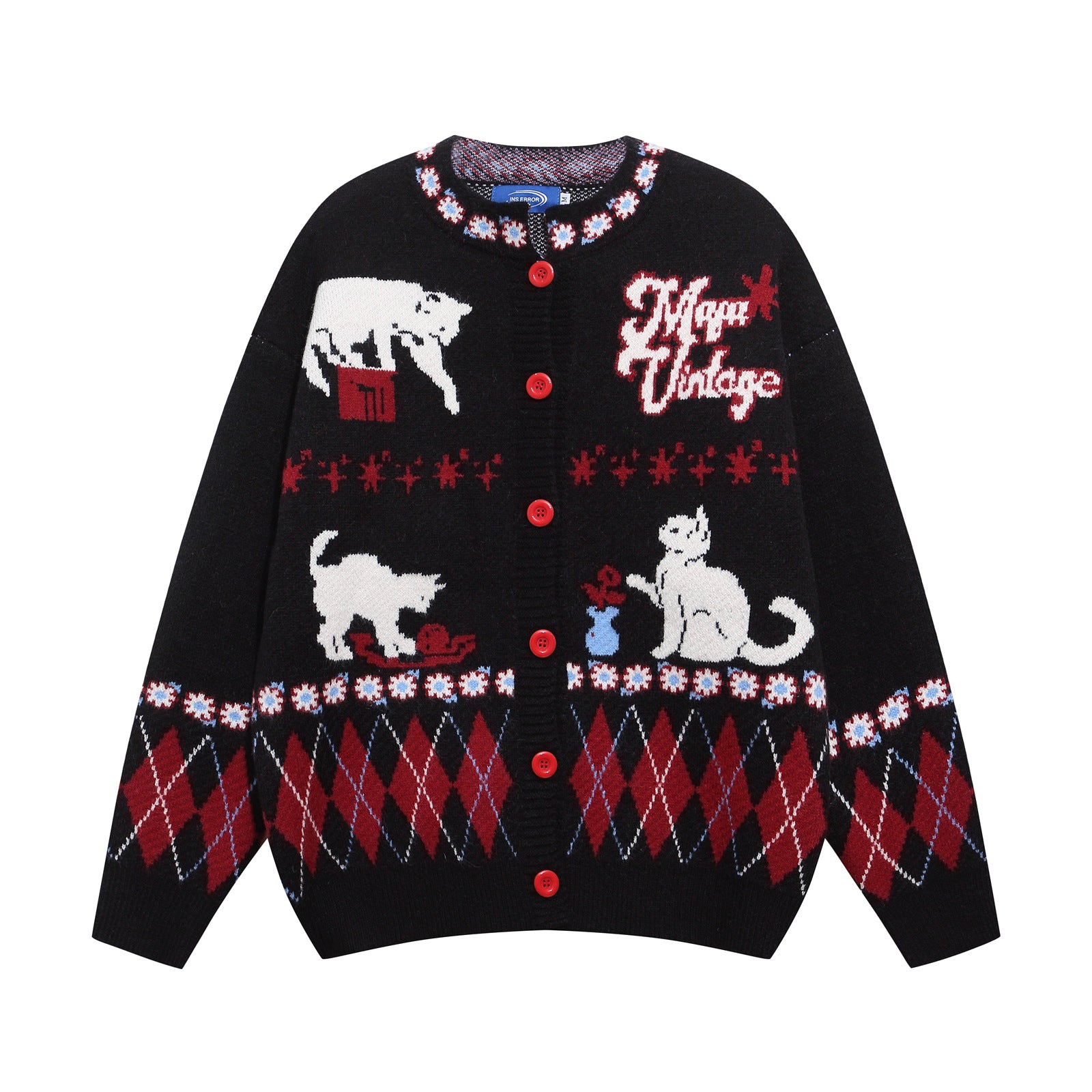 ⓀⓃⒾⓉ𒉽2025秋冬慵懶小貓圓領針織外套 K-02