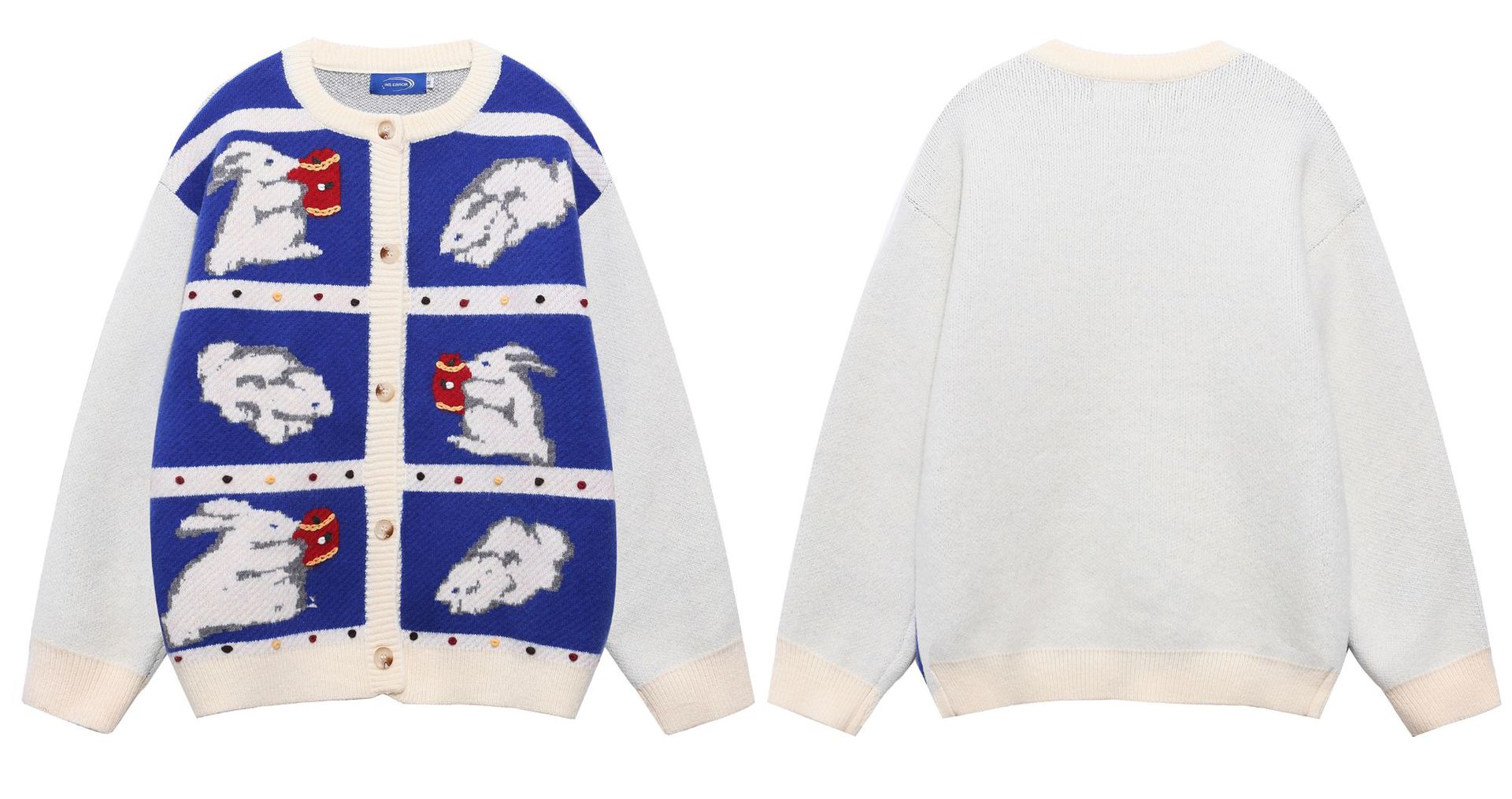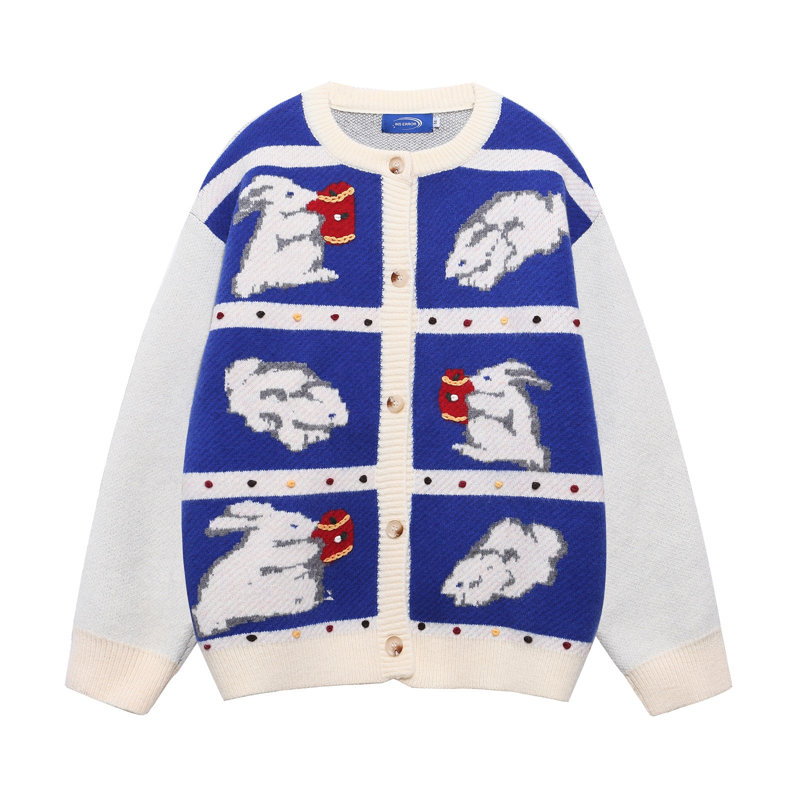 ⓀⓃⒾⓉ𒉽2025秋冬趣味兔子圓領針織外套 Y-88