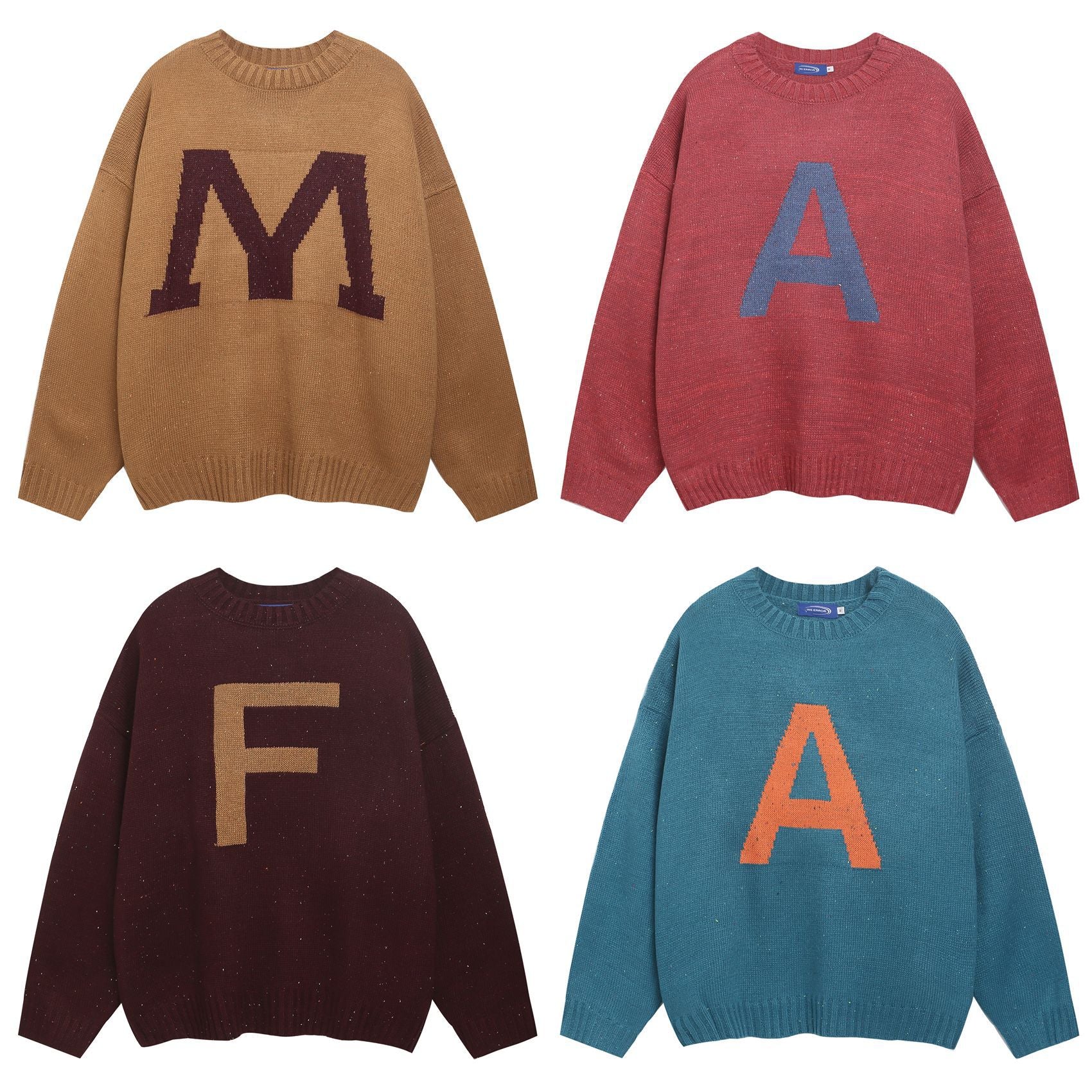ⓀⓃⒾⓉ𒉽2025秋冬美式復古字母圓領慵懶針織 K-60