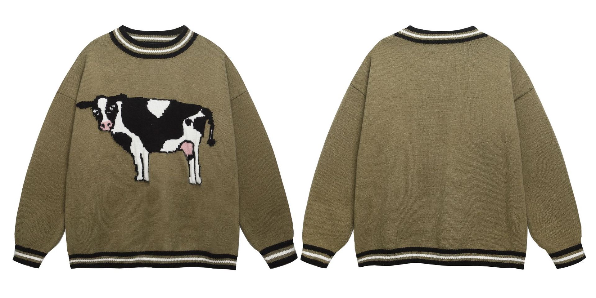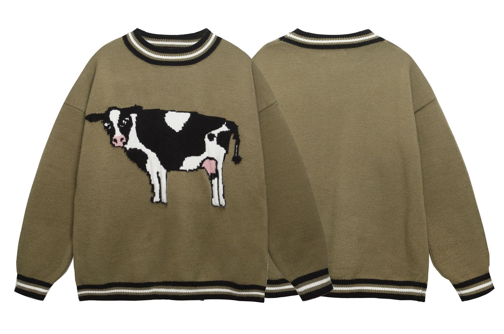 ⓀⓃⒾⓉ𒉽2025秋冬可愛奶牛刺繡圓領針織 K-38