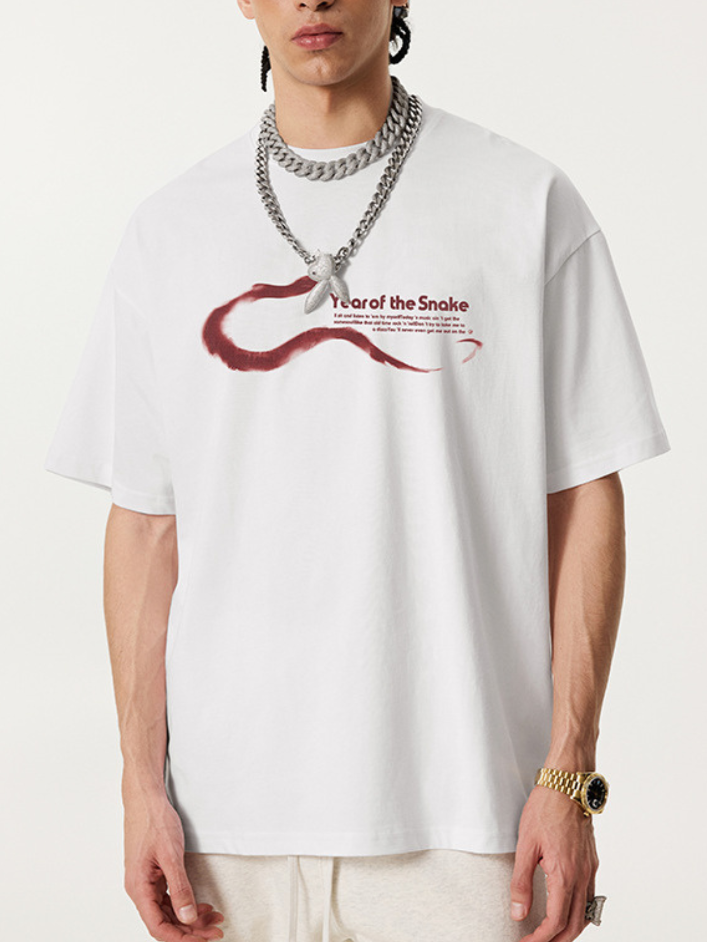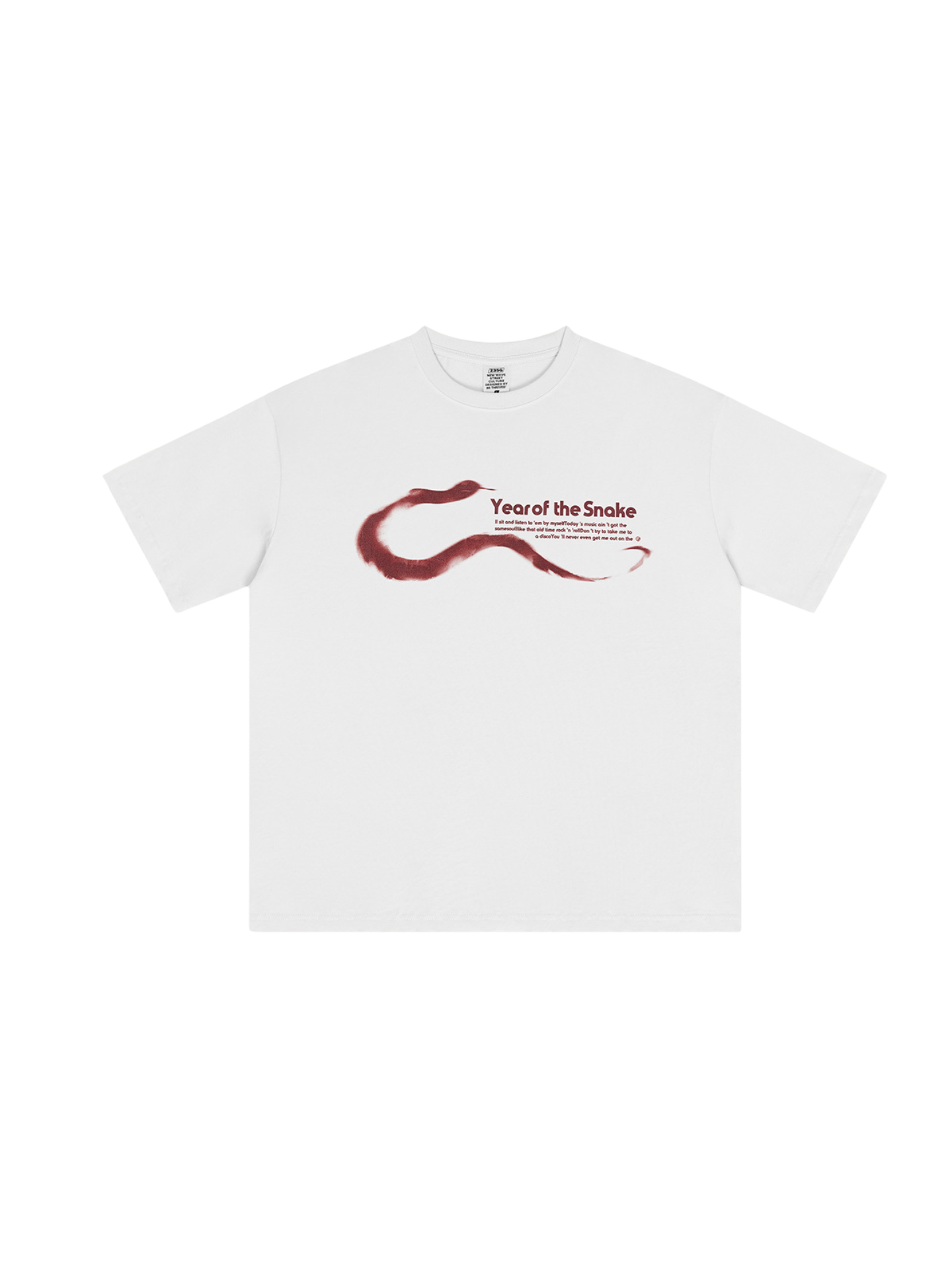 ▶𝔽𝕦𝕤𝕚𝕠𝕟 𝔽𝕠𝕔𝕦𝕤 ⌘𝓦𝓪𝓼𝓱𝓮𝓭 𝔀𝓲𝓷𝓭 ◀2025夏季歐美潮牌經典款新年系列oversize蛇年寬鬆大碼短袖T恤男 TZ-20