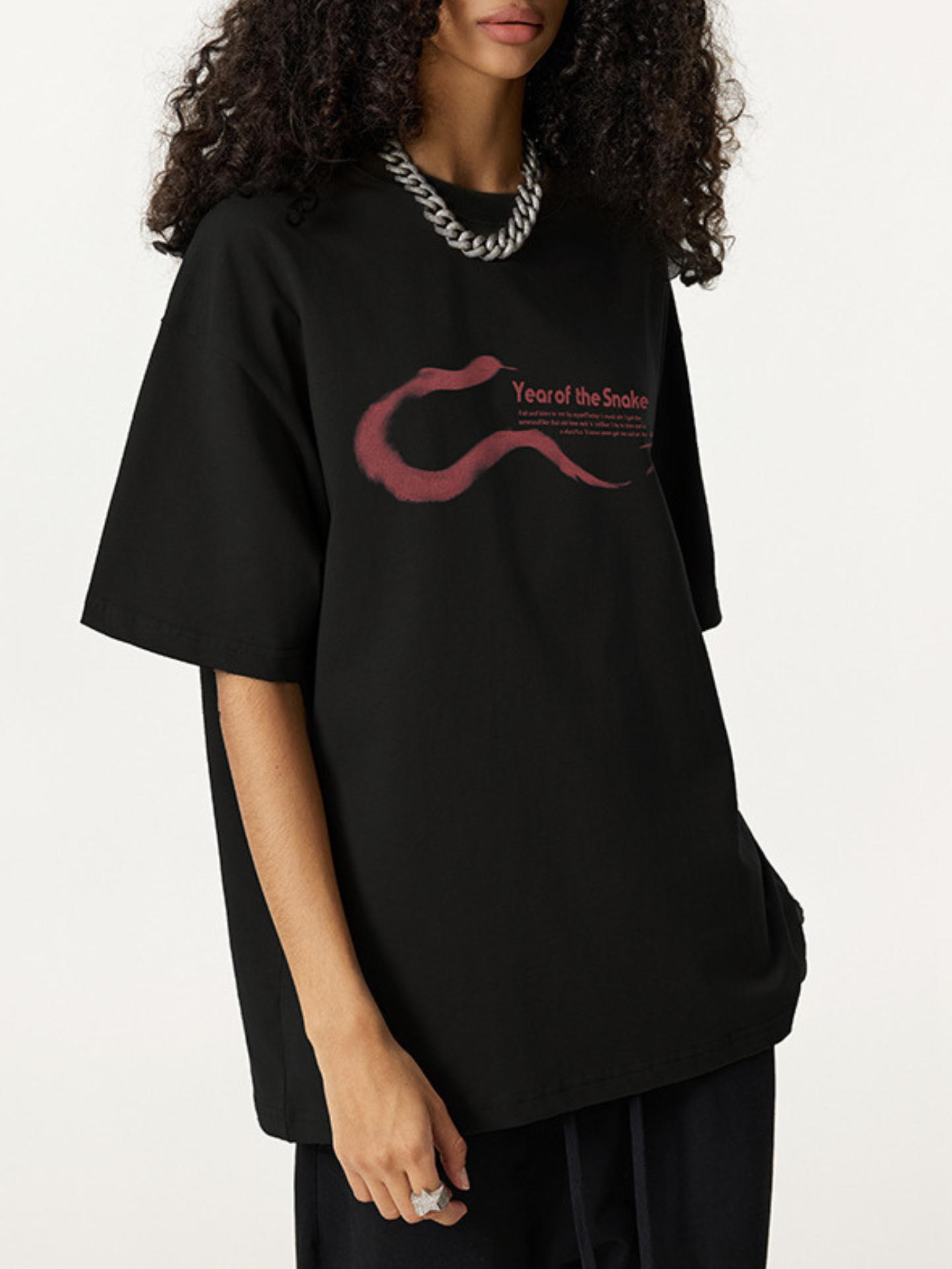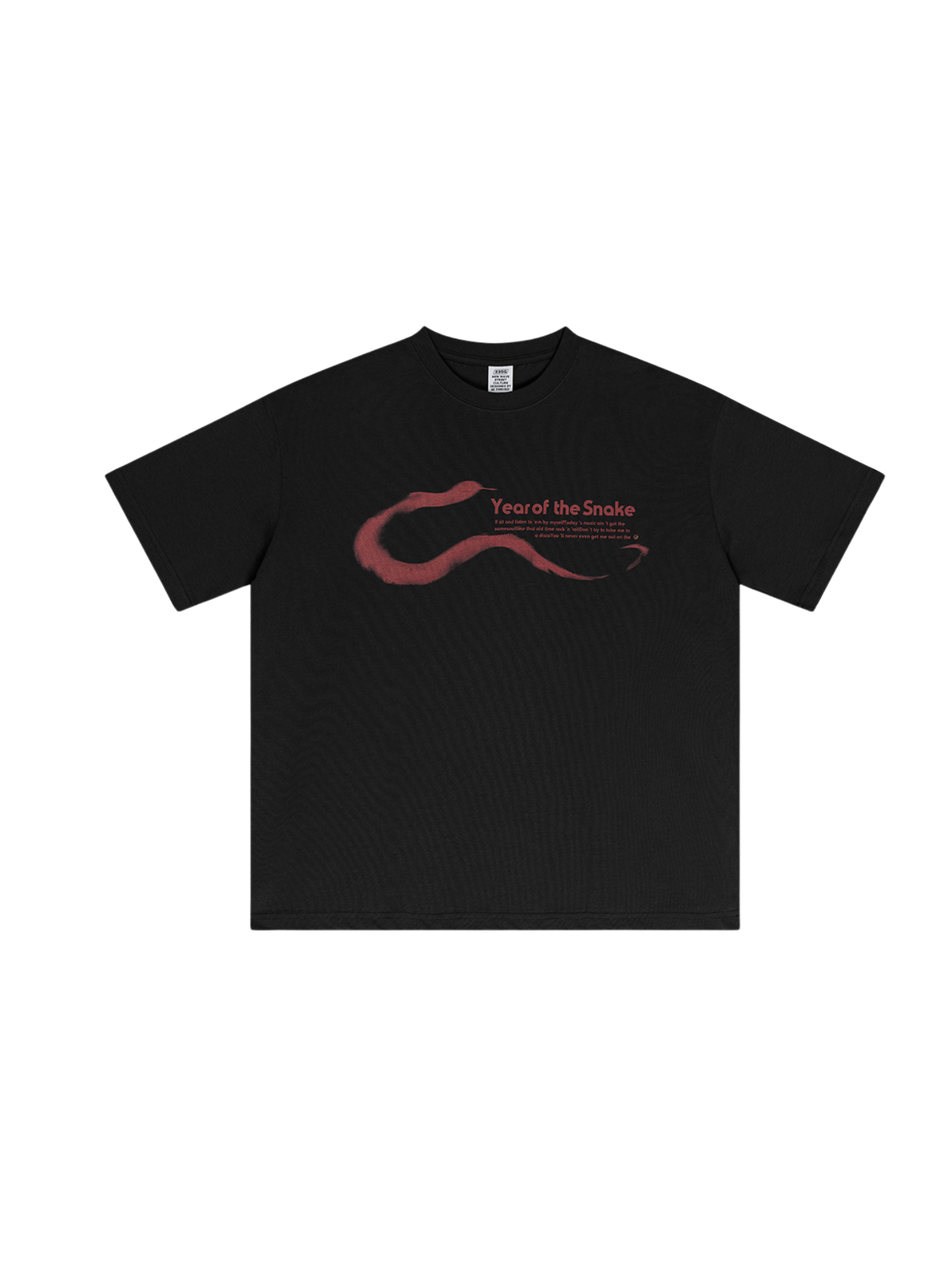 ▶𝔽𝕦𝕤𝕚𝕠𝕟 𝔽𝕠𝕔𝕦𝕤 ⌘𝓦𝓪𝓼𝓱𝓮𝓭 𝔀𝓲𝓷𝓭 ◀2025夏季歐美潮牌經典款新年系列oversize蛇年寬鬆大碼短袖T恤男 TZ-20