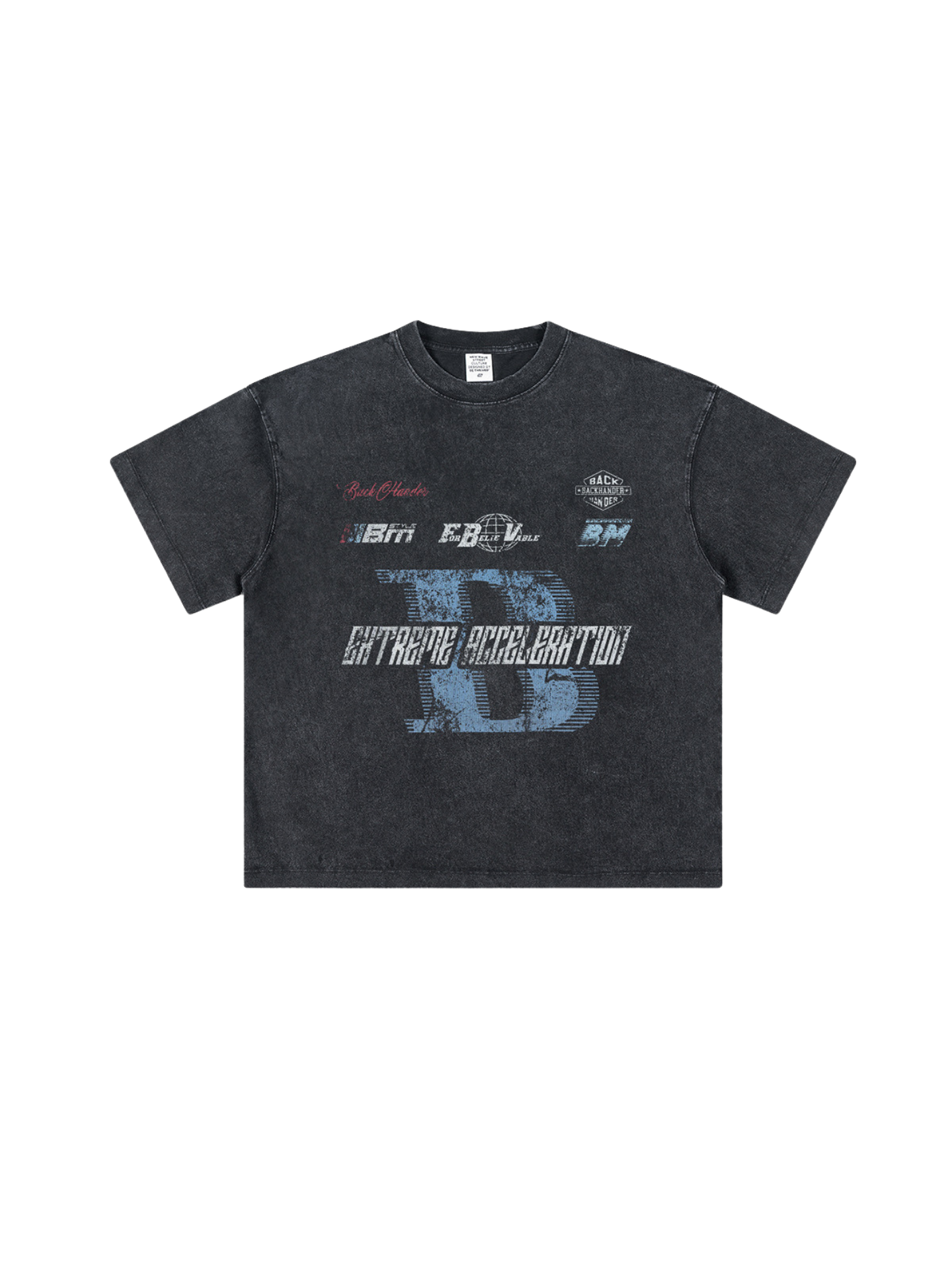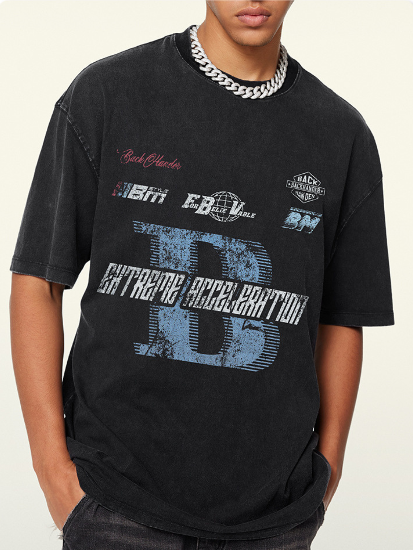 ▶𝔽𝕦𝕤𝕚𝕠𝕟 𝔽𝕠𝕔𝕦𝕤 ⌘𝓦𝓪𝓼𝓱𝓮𝓭 𝔀𝓲𝓷𝓭 ◀2025夏季美式小眾潮牌賽車字母短袖休閒水洗做舊oversize男女T恤 TZ-26