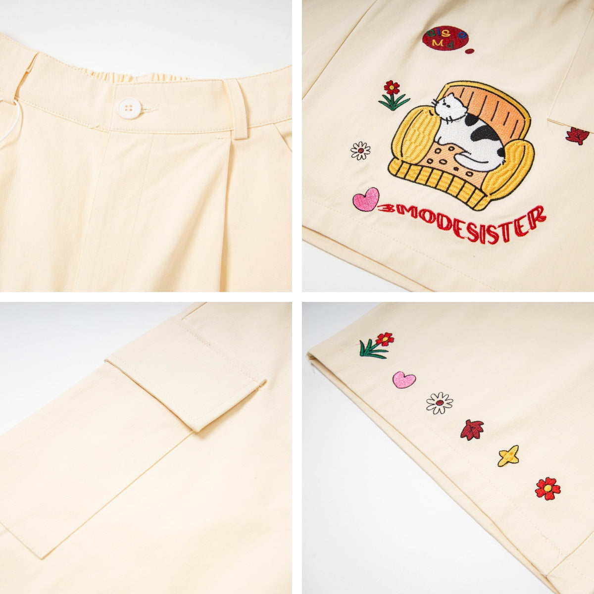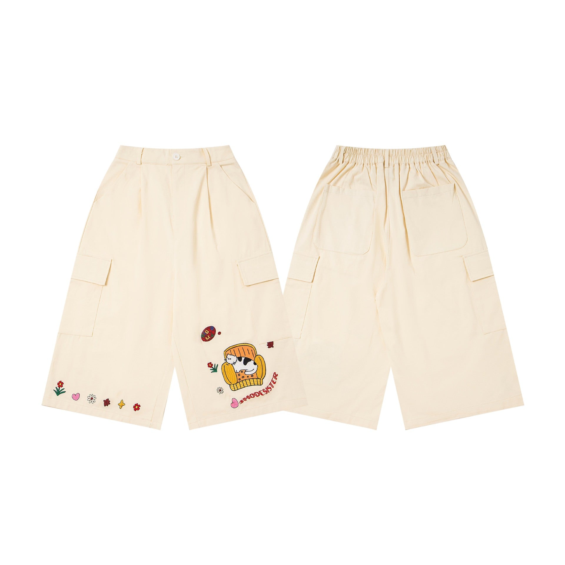 𖥟𝕽𝖊𝖑𝖆𝖝𝖊𝖉 𝖋𝖎𝖙 ☞美式復古卡通刺繡七分褲M-23