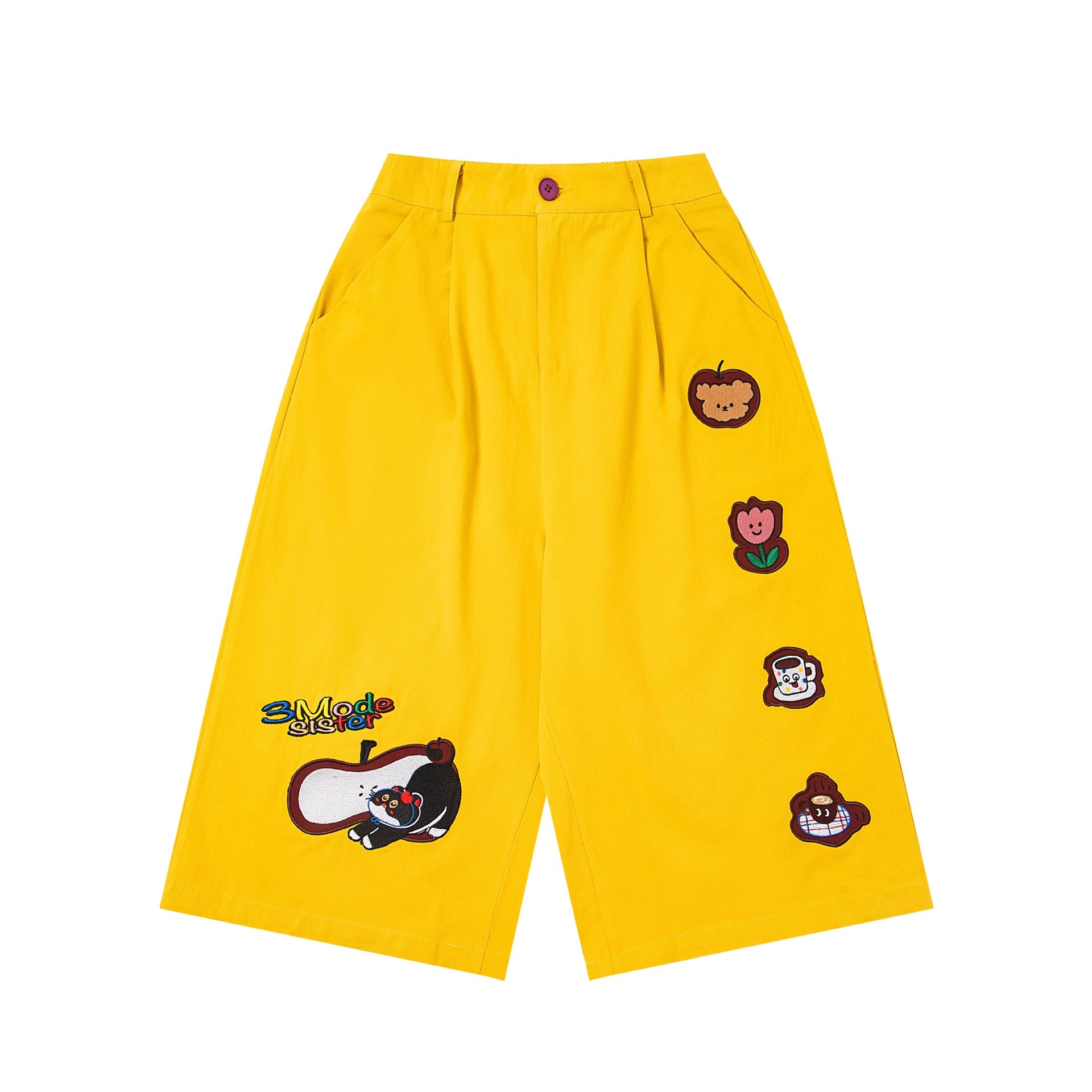 𖥟𝕽𝖊𝖑𝖆𝖝𝖊𝖉 𝖋𝖎𝖙 ☞美式復古卡通刺繡七分褲M-21